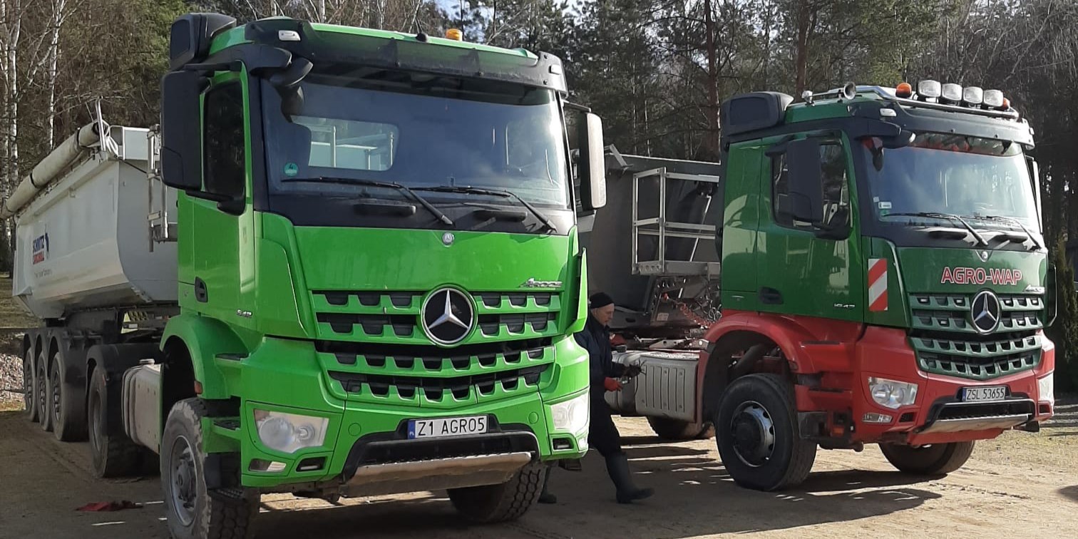 Materiał dostarczany jest przy pomocy floty ciągników siodłowych 4×4, co gwarantuje szybki transport do każdego Klienta oraz dostawę pod wskazany adres.
